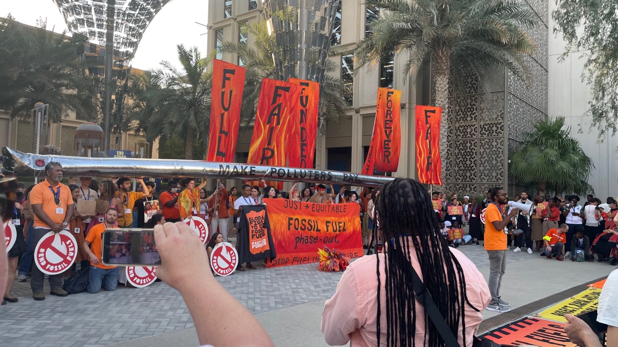 (At the outdoor area of COP28, climate action organizations advocating for the “just phasing out of fossil fuels” conducted promotional activities on related topics)