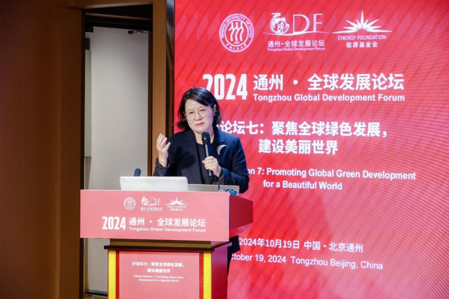 From October 18 to 20, 2024, Renmin University of China held the "Tongzhou Global Development Forum (2024)" with the theme of "Building a Development Community and Creating a New Era for Humanity" at the Beijing Grand Canal Museum and the Beijing City Library. Among the parallel sub-forums of the Tongzhou Global Development Forum (2024), the 7th Parallel Session, themed "Focusing on Global Green Development and Building a Beautiful World", was co-hosted by the School of Ecology and Environment of Renmin University of China and the Energy Foundation . It was successfully held in the Daohe Hall of the Beijing City Library. The meeting was chaired by Jia Tieying, the Party Secretary of the School of Ecology and Environment, and Wang Ke, the Vice Dean of the School. Jia Tieying delivered an opening speech on behalf of the organizer.