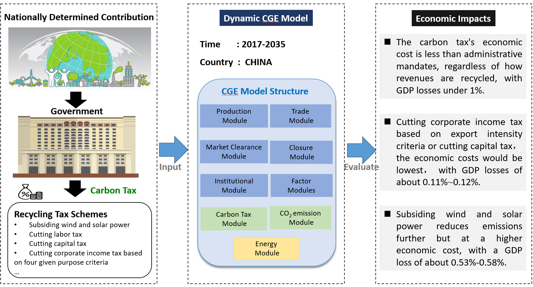 Jun Pang et al:Economic impacts of meeting China's NDC through carbon taxes with alternative schemes for recycling tax revenues