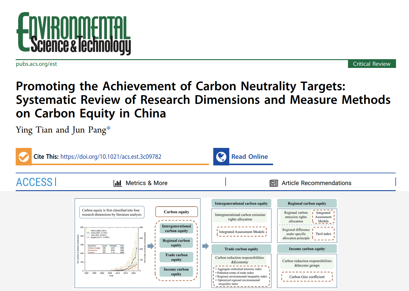 Jun Pang et al:Promoting the Achievement of Carbon Neutrality Targets: Systematic Review of Research Dimensions and Measure Methods on Carbon Equity in China