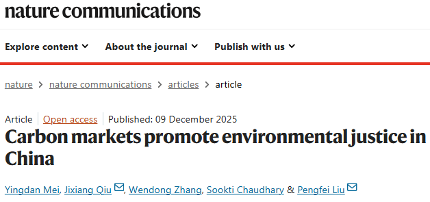近日,2025最新赌博网站大全 梅应丹副教授以第一作者身份在国际综合顶级期刊《Nature Communications》发表题为“Carbon markets promote environmental justice in China”的学术论文。