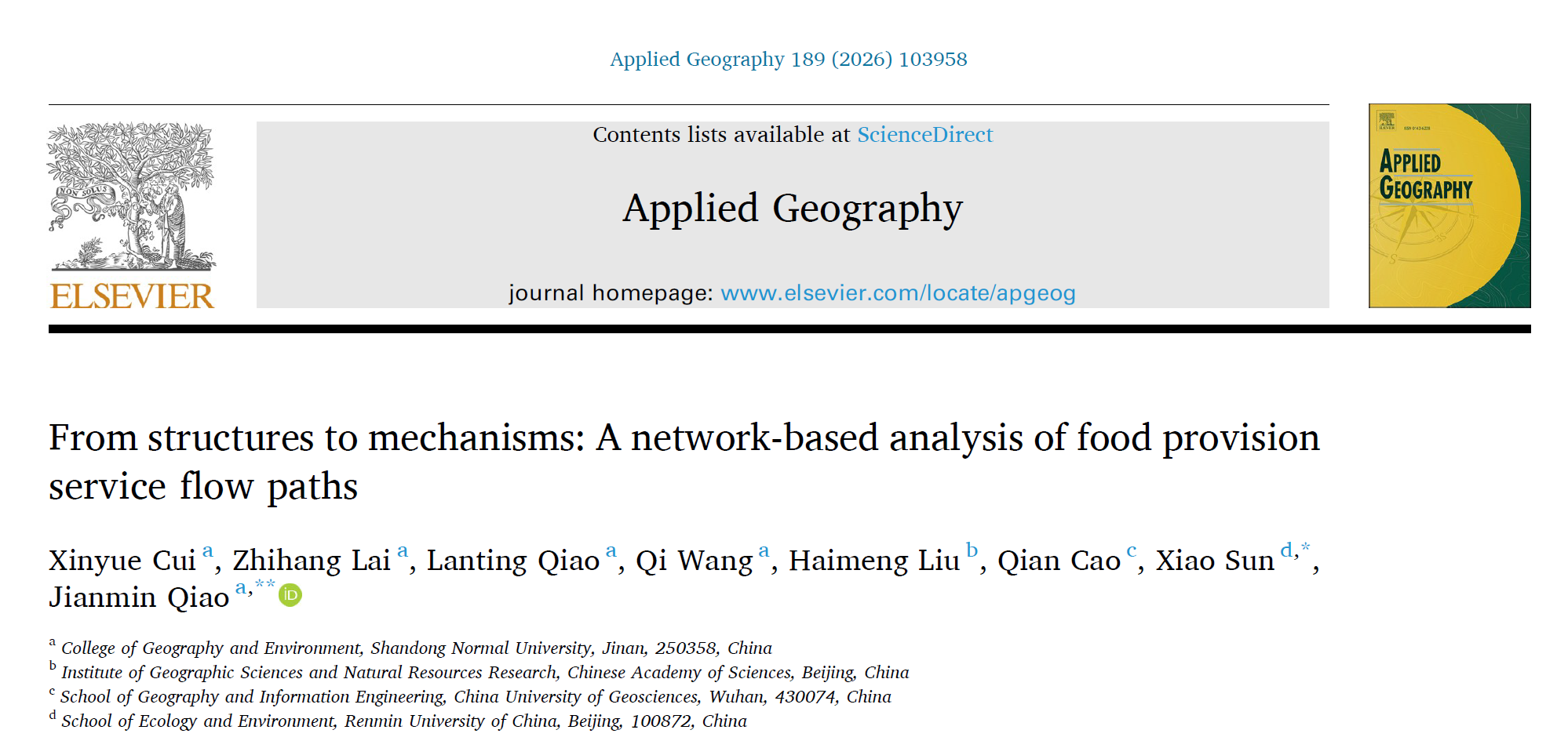 近日,2025最新赌博网站大全 孙晓副教授作为通讯作者,与合作者的研究论文“From structures to mechanisms: A network-based analysis of food provision service flow paths” 在地球科学研究领域国际Top期刊Applied Geography发表。